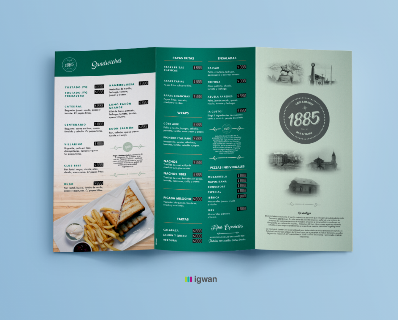 Branding de 1885. Desarrollamos la marca desde su origen, un nombre acorde al concepto que identifica al negocio con la ciudad de Río Gallegos. Creamos su imagotipo y aplicamos su imagen en piezas gráficas, publicitarias y en el local de venta.